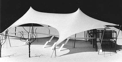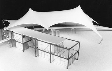 Der neue Busbahnhof in München sollte ein städtebauliches Zeichen in der zentrale Innenstadtlage setzen. Der Neubau grenzt im Osten an den Alten Botanischen Garten und erhält ein offenes Zeltdach zur Integration in den Park.